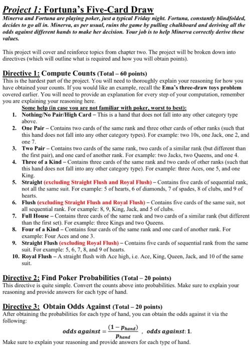 Solved Project 1 Fortuna S Five Card Draw Minerva And Chegg Com